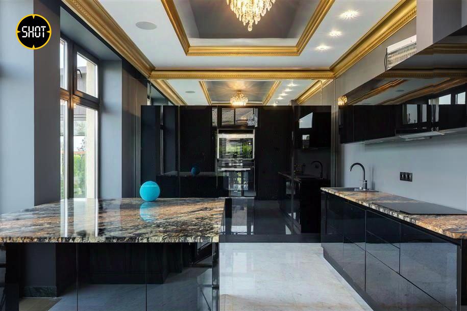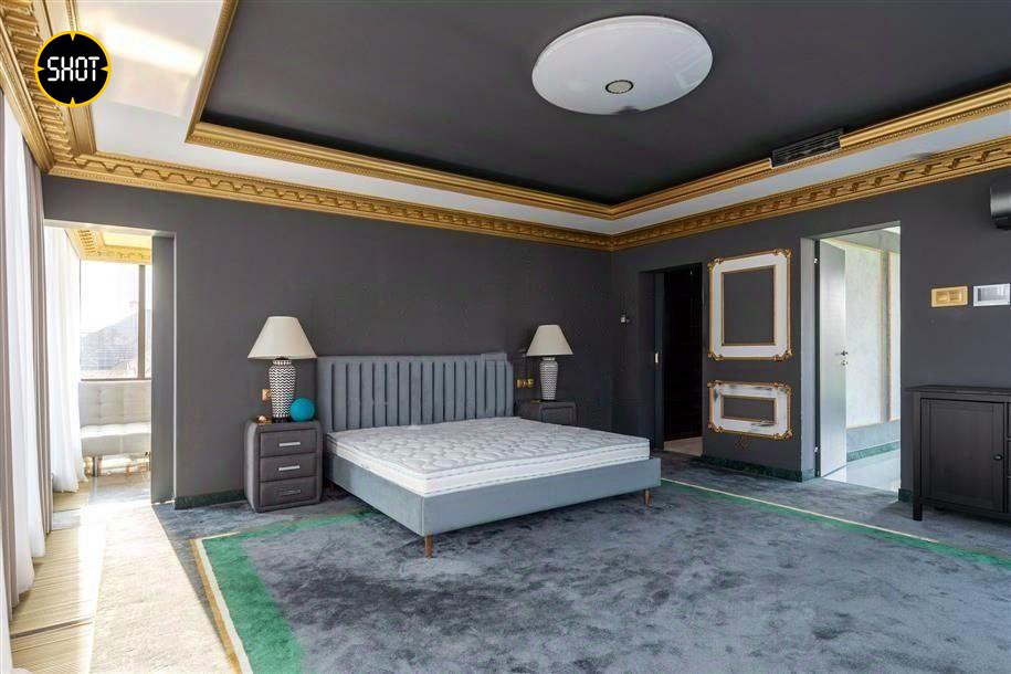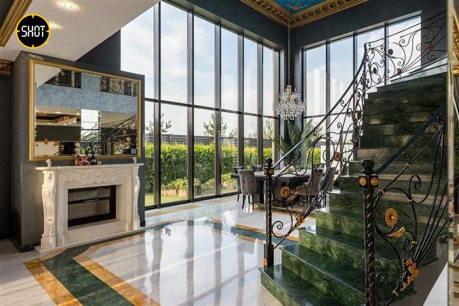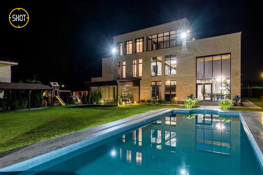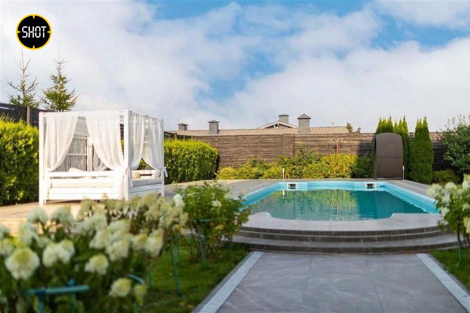 Сам лот — шикарный особняк, облицованный натуральным камнем, внутри есть просторная гостиная с камином, столовая, кинотеатр, тренажёрный зал, хаммам, четыре спальни с индивидуальными гардеробными и санузлами. Отдельно на участке построен гостевой дом площадью 250 квадратов. На территории есть бассейн и две беседки.