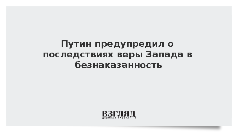 Президент России Владимир Путин выразил обеспокоенность тем, что слепая вера западных стран в собственную безнаказанность может привести к мировым трагическим последствиям.