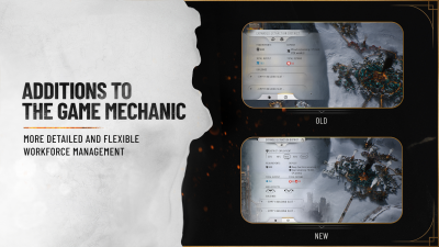 - геймплейные механики — игровой процесс стал плавнее благодаря изменениям в системе температуры, более гибкому управлению рабочей силой, большему числу прямых способов реакции на затруднительные ситуации, новому ресурсу для стабилизации экономики и усиления стратегического аспекта расширения города, возможности изменить районы после их возведения, более достоверному поведению фракций и более комплексному подходу к подавлению протестов;