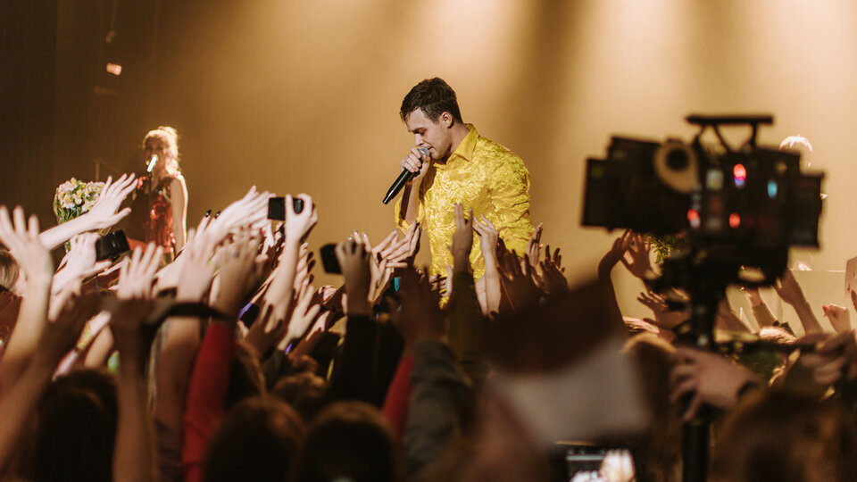 До начала съемок я поехал в тур с группой «Руки Вверх!». «Как все начнется, иди к световикам, кто музыку включает, там все посмотри, а потом иди в зал и танцуй. Почувствуй, как все происходит», — посоветовал Жуков. Он выходит на сцену, и весь зал начинает кричать. У меня мурашки по коже, я просто опупел от тех эмоций, которые люди излучали. Вот так они его любят.