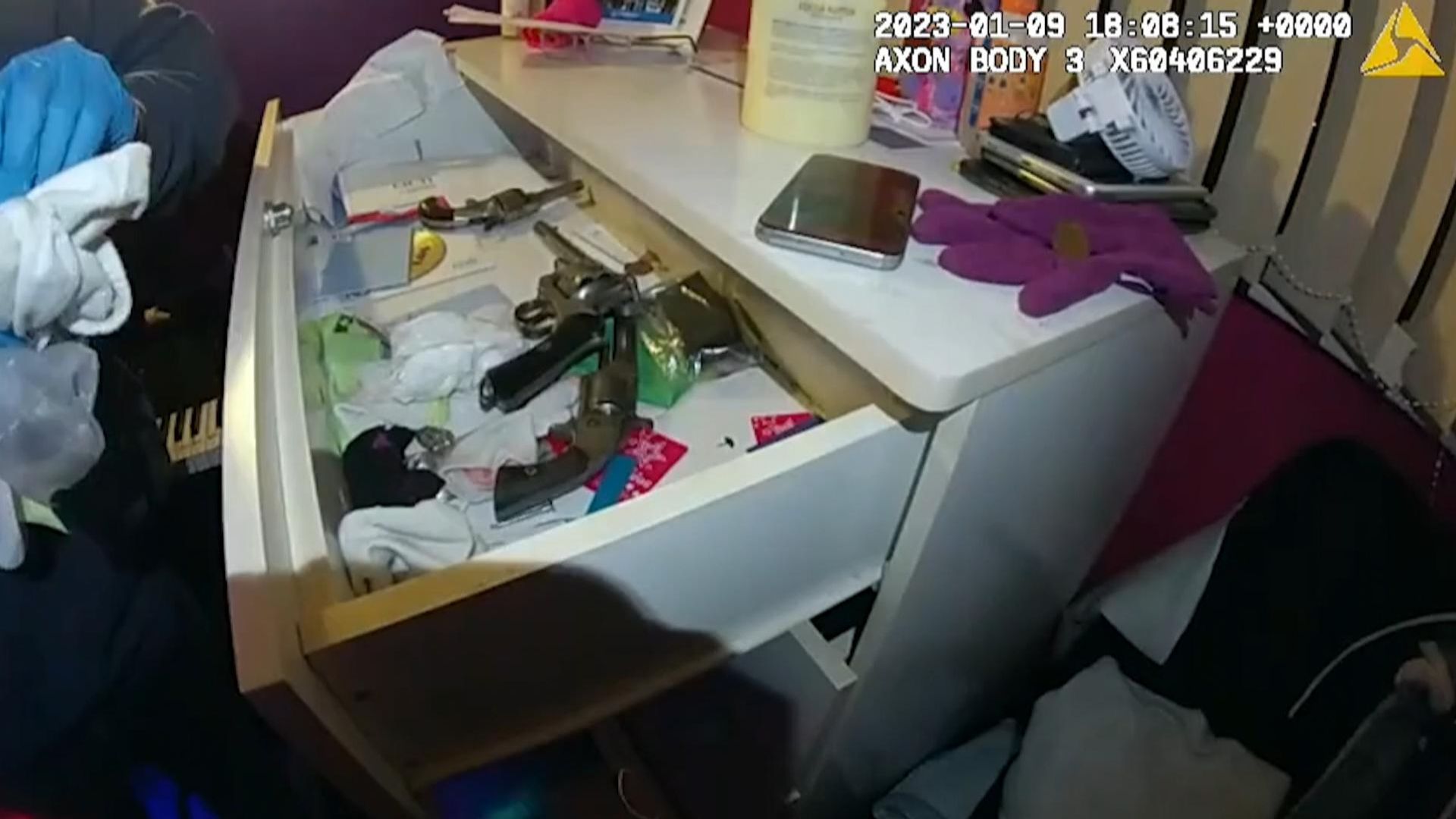 Three handguns, one of which was loaded, were among the weapons discovered in his children's underwear drawer.