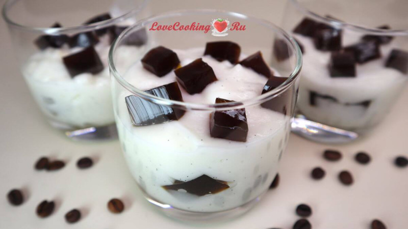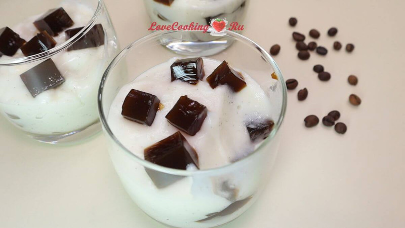 Желейный кофе в воздушном молоке, кофейный десерт в стакане