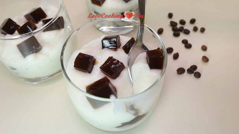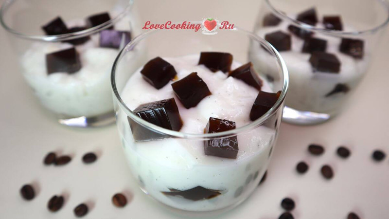 Чередуем слои желейного кофе и воздушного молока. Подаём десерт в охлаждённом виде.