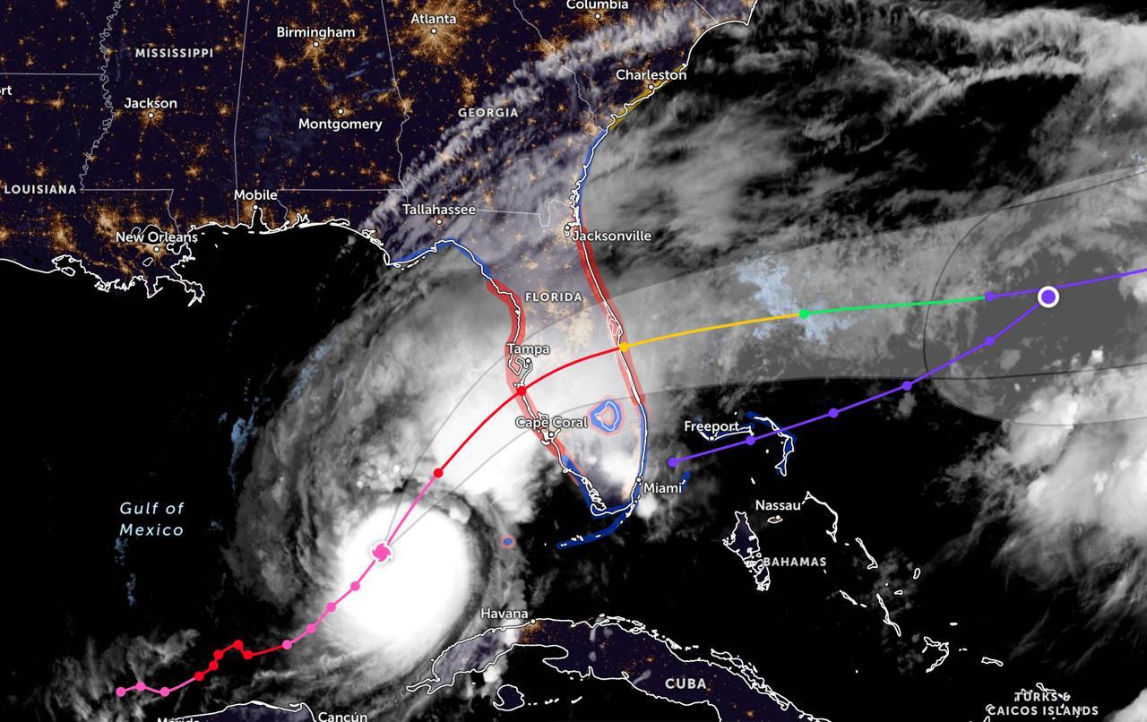 Национальный ураганный центр сообщает, что Милтон может стать самым разрушительным ураганом за всю историю метеонаблюдений в западно-центральной Флориде. Ожидается, что он достигнет берегов штата около 2 часов ночи. По прогнозу Милтон приведёт к выпадению 46 см осадков, скорость ветра может составить более 200 км/ч.