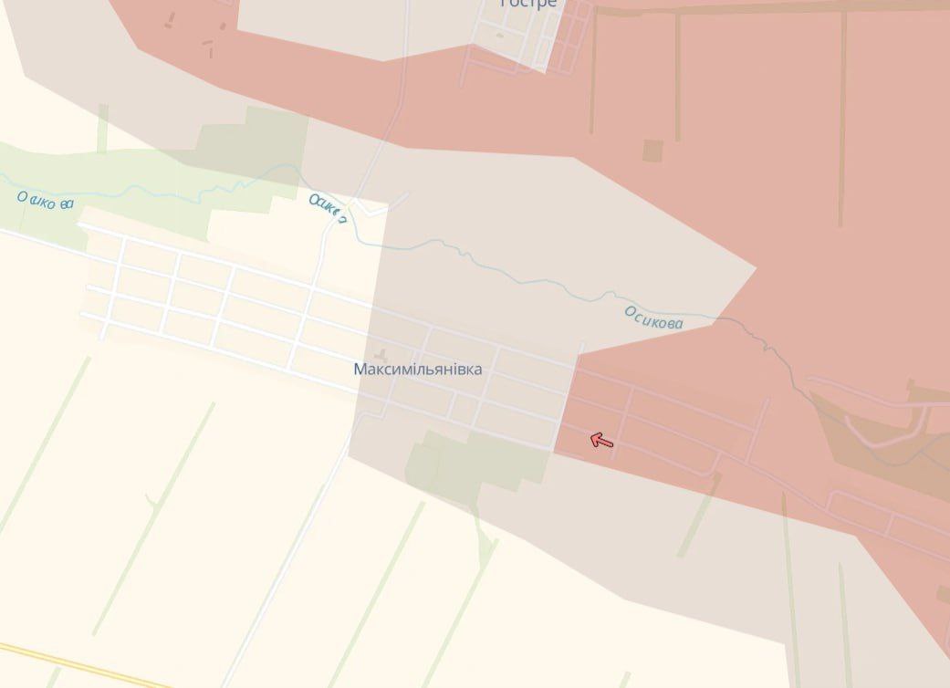 На карте Deep State Максимильяновка по-прежнему лишь частично захвачена армией РФ.