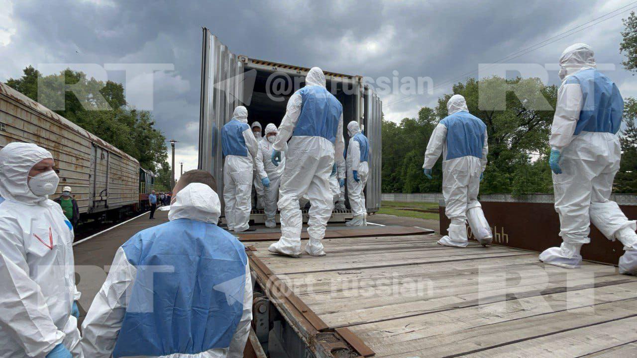 Кадры передачи Украине тел ещё 1200 военных ВСУ в рамках договорённостей, заключённых в Стамбуле. Киев не передал Москве ни одного тела.