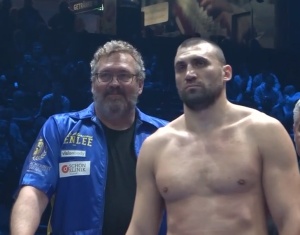 Бой продлился всего лишь 15 секунд. Выхрист агрессивно повалил на соперника, контролировал дистанцию джебом. Пробил по корпусу, после чего Цветков тут же завалился в углу ринга.