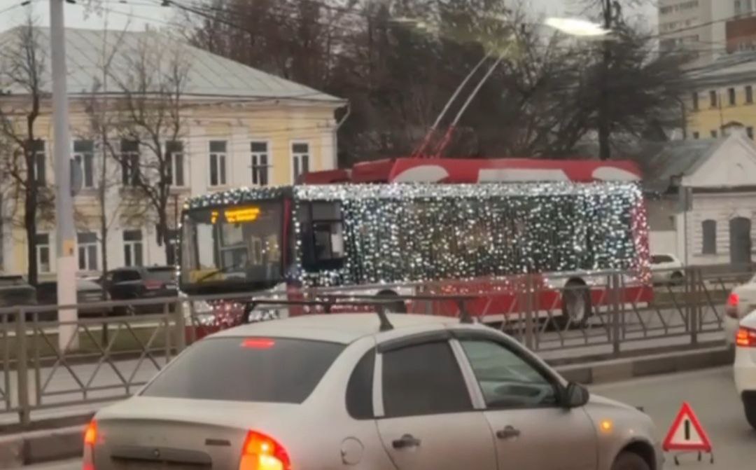 Фото новогоднего троллейбуса разместили туляки в Telegram-канале «Тула с огоньком».