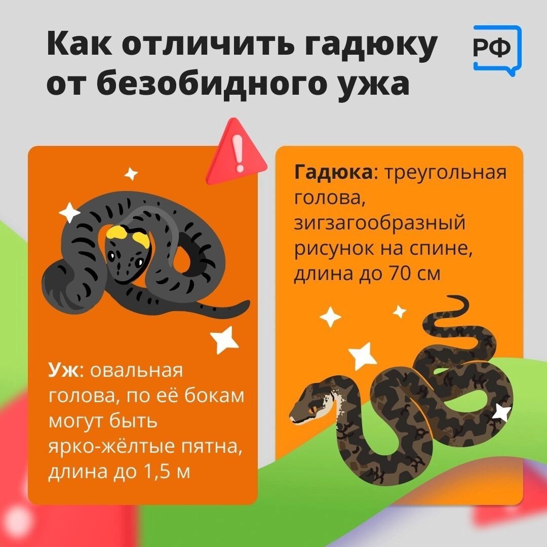 Кстати, отличить гадюку от безобидного ужа вам помогут иллюстрации, подготовленные минздравом Удмуртии.