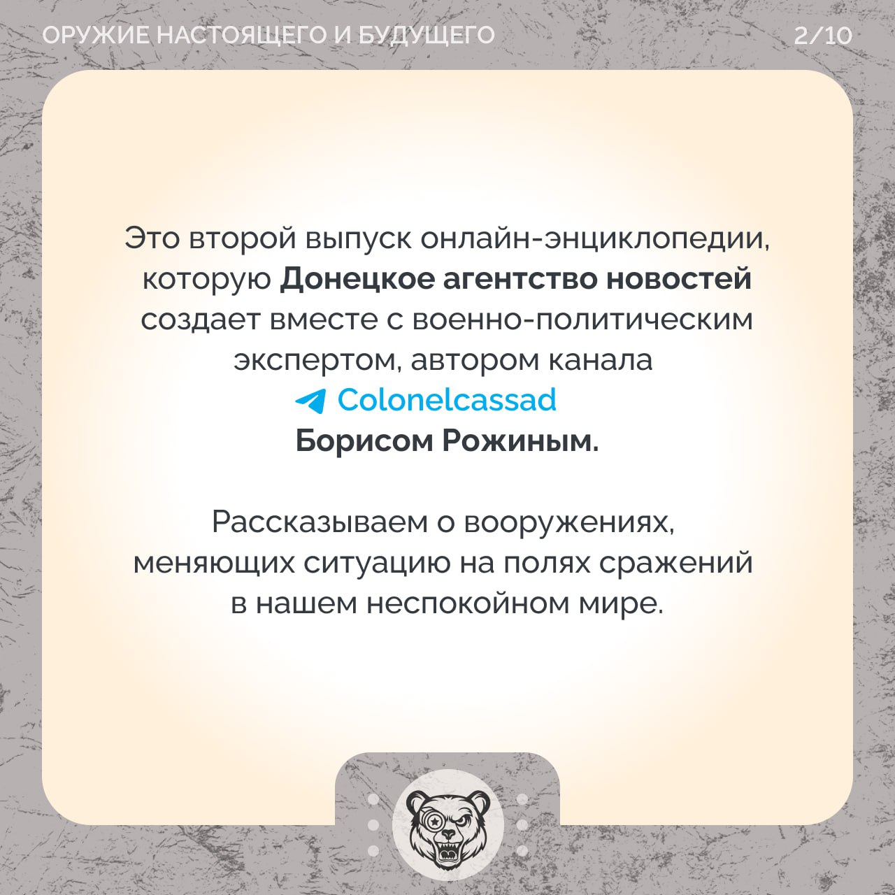 ⭐️ «Оружие настоящего и будущего» – онлайн-энциклопедия Донецкого агентства новостей и военно-политического эксперта, автора канала Colonelcassad Бориса Рожина. Рассказываем о вооружениях, меняющих ситуацию на полях сражений в нашем неспокойном мире