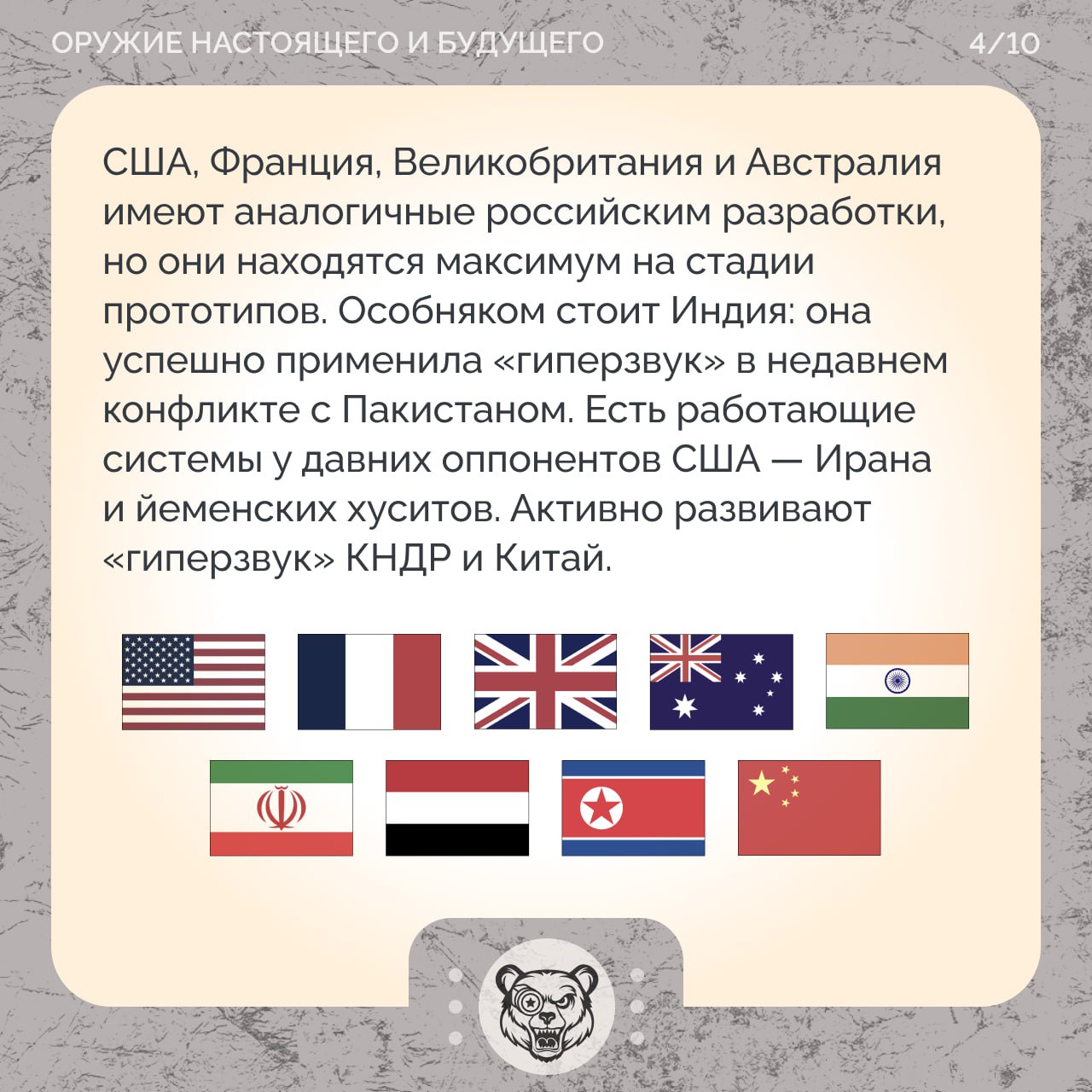 ⭐️ Разработки в этой области есть у целого ряда других стран в разных частях света. В частности, активно занимается развитием собственного «гиперзвука» Китай