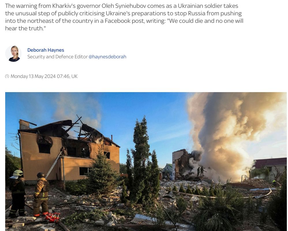 π Β«ΠΠΎ ΡΡΡΠΈ, Π»ΠΈΠ½ΠΈΡ ΡΡΠΎΠ½ΡΠ° ΡΠ°ΡΡΠΈΡΡΠ΅ΡΡΡ, ΠΈ ΠΏΡΠΎΡΠΈΠ²Π½ΠΈΠΊ Π½Π°ΡΡΡΠΏΠ°Π΅Ρ Ρ ΠΌΠ½ΠΎΠ³ΠΎΡΠΈΡΠ»Π΅Π½Π½ΡΡ Π½Π°ΠΏΡΠ°Π²Π»Π΅Π½ΠΈΠΉΒ», β Π·Π°ΡΠ²ΠΈΠ» Π³Π»Π°Π²Π° Π²ΠΎΠ΅Π½Π½ΠΎΠΉ Π°Π΄ΠΌΠΈΠ½ΠΈΡΡΡΠ°ΡΠΈΠΈ Π₯Π°ΡΡΠΊΠΎΠ²ΡΠΊΠΎΠΉ ΠΎΠ±Π»Π°ΡΡΠΈ ΠΠ»Π΅Π³ Π‘ΠΈΠ½Π΅Π³ΡΠ±ΠΎΠ² Π² ΠΈΠ½ΡΠ΅ΡΠ²ΡΡ Sky News.