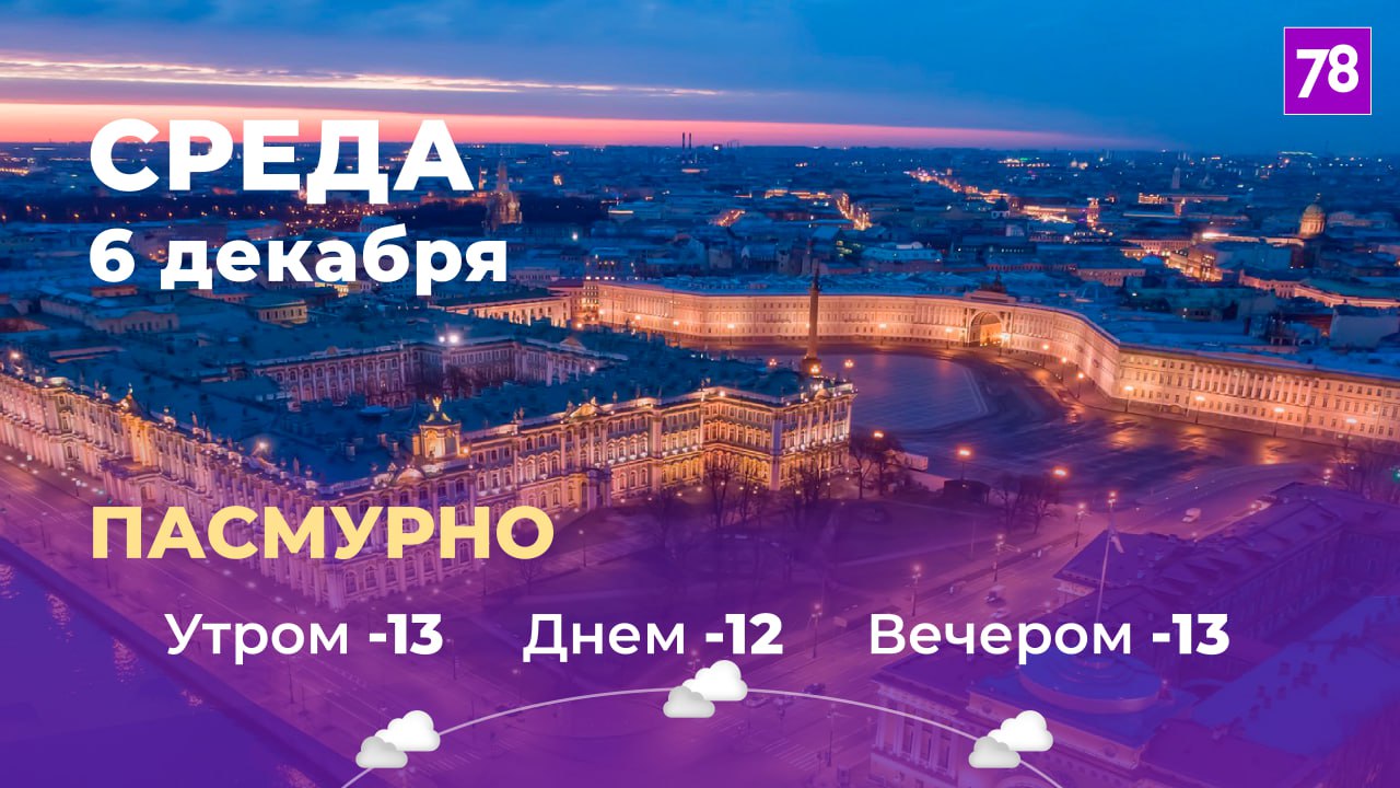 Сегодня в Петербурге облачно, но с прояснениями. На дороге ожидается гололедица, зато без осадков.