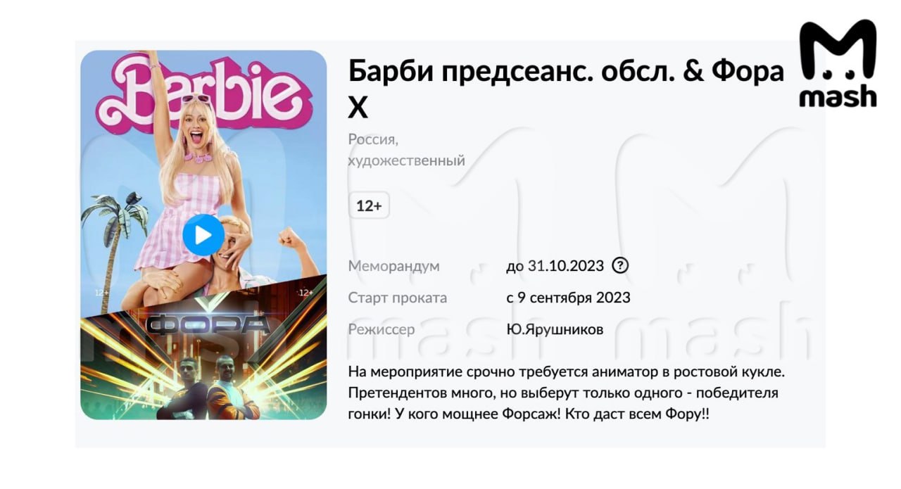 По нашей информации, билеты уже в продаже и пользуются спросом. Пока только в Москве и без широкого освещения. Способ уже обкатан на "Форсаже", "Бэтмене" и "Аватаре". После "Барби", если вдруг захотите — фильм, на который покупали билет. Это короткометражка "Фора Х".