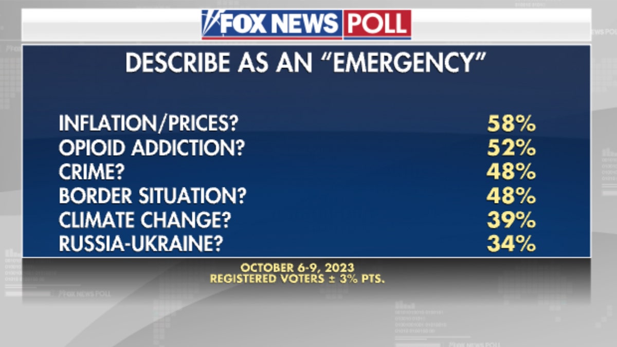 Fox News Polling asking what issues Americans describe as an "emergency." (Fox News)