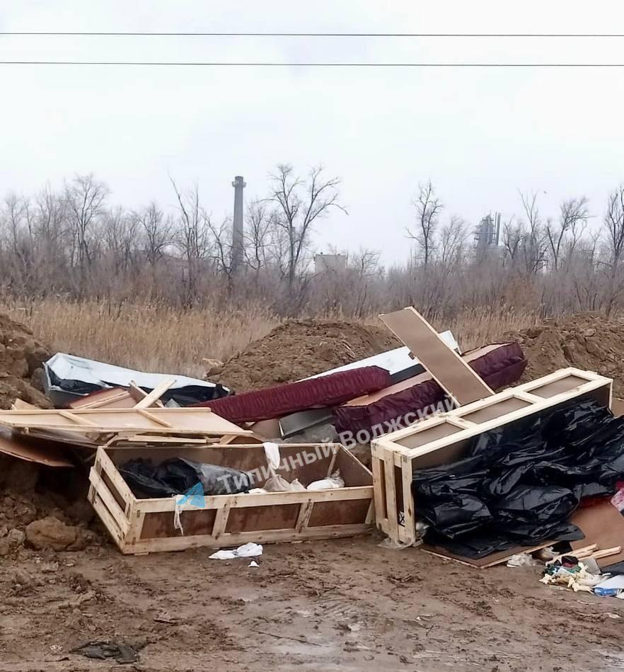 Свалку из цинковых гробов, транспортных ящиков и черных пакетов обнаружили на окраине города-спутника Волгограда — Волжского. Ритуальное предприятие, осуществлявшее похороны участников СВО и избавившееся таким образом от элементов «Груза 200», сейчас ищут чиновники администрации и полиция.