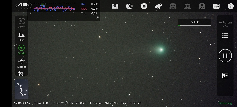 Ближайшие две недели — лучшее время для наблюдения за кометой. Оптимальное время для наблюдений — перед рассветом, с 2:00 до 4:30. В течение всего октября комета будет видна невысоко над северной частью горизонта, недалеко от Ковша Большой Медведицы. На данный момент длина её газового хвоста составляет 3 градуса (это примерно 6 полных дисков Луны), а к середине октября она увеличится до нескольких десятков градусов. В этот период будут видны два хвоста: изогнутый пылевой и прямой газовый. Об этом сообщает AstroAlert | Наблюдательная астрономия