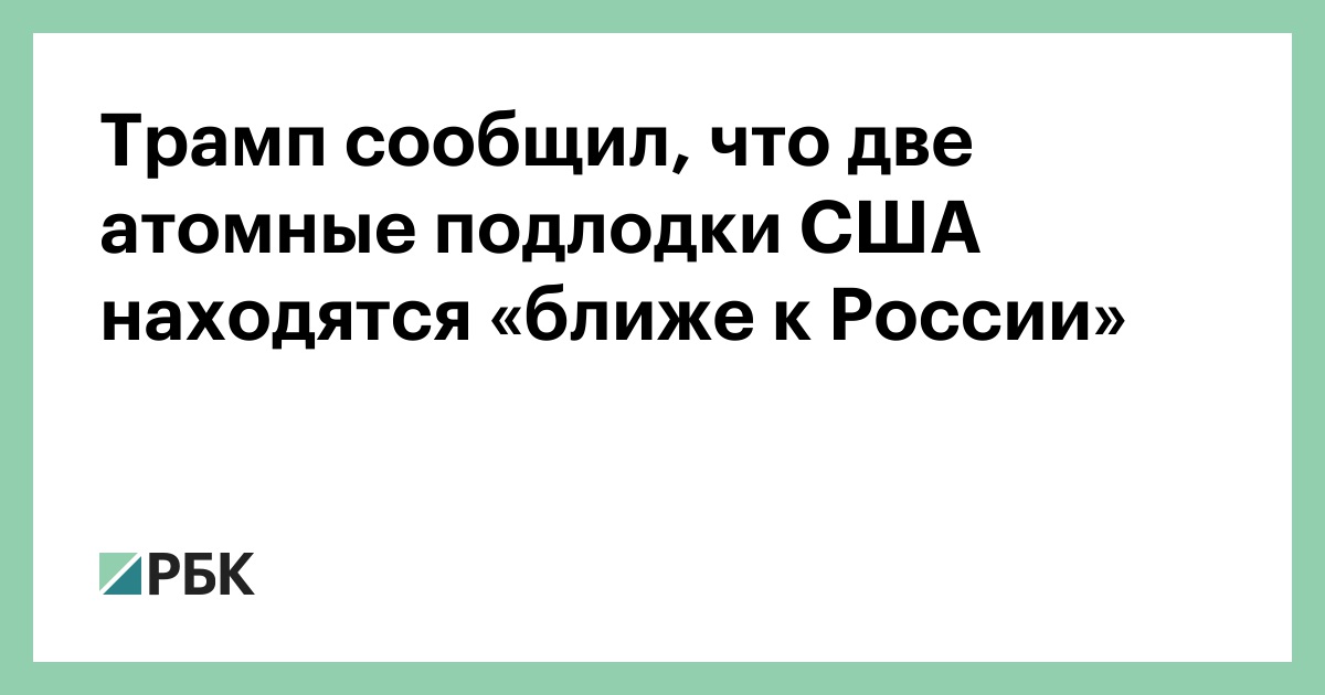 Президент США Дональд Трамп заявил, что две американские подводные лодки будут располагаться ближе к России. Об этом он заявил в интервью телеканалу Newsmax.