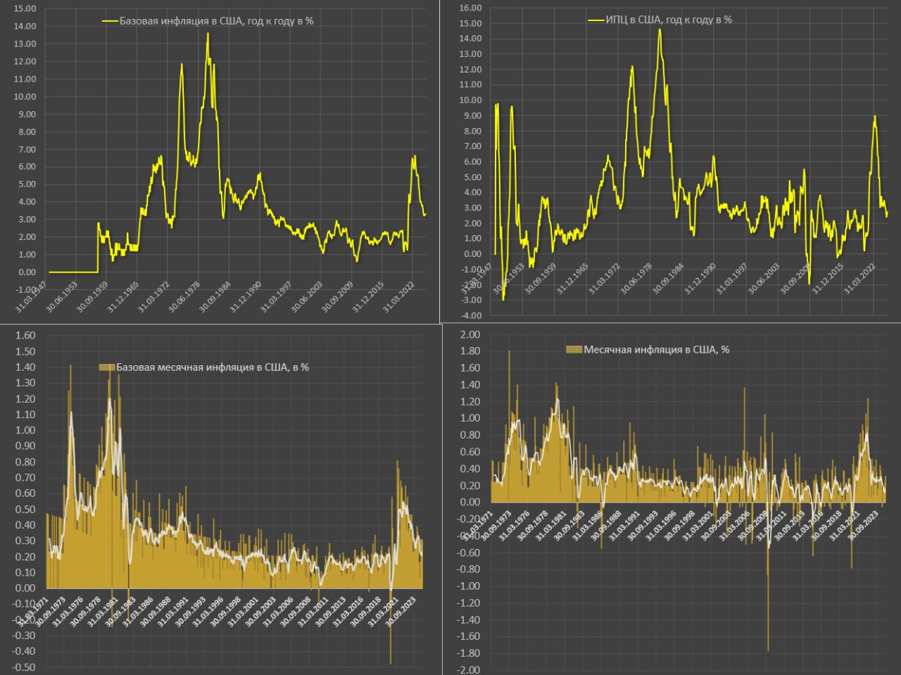 Весьма любопытно (хотя нет), Bloomberg весь день истерично вопил (1, 2,) про то, что данные по инфляции восхитительны и рынкам самое время вырасти на очередной максимум, т.к. ФРС обязательно понизит ставку в декабре и все идет по плану. Кстати, ФРС начала сокращать ставку сразу, как только данные по инфляции начали ухудшаться.