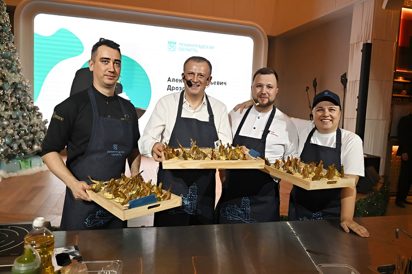 Потчевали гостей выставки не только новыми знаниями, но и более традиционными ленинградскими блюдами. Для посетителей мастер-класса с дегустацией в Доме российской кухни на ВДНХ шеф-повара одного из круглогодичных курортов области приготовили подкопченного волосовского сома с картофелем, приозерских перепелов с вяленой морковью и жареную корюшку с огурцом. Кстати, помогал им Александр Дрозденко.