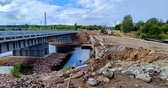На другом въезде в Выборг, со стороны Приморского шоссе у судостроительного завода, в августе готовятся запустить второй этап временной дороги: от моста до Приморского шоссе внутри Выборга. Последнее станет однополосным. Подготовка временного проезда уже на финальной стадии, рассказали в дорожном комитете. Одновременно дорожники разбирают старый мост через бухту Ховелахти, а для машин рядом уже работает временный.