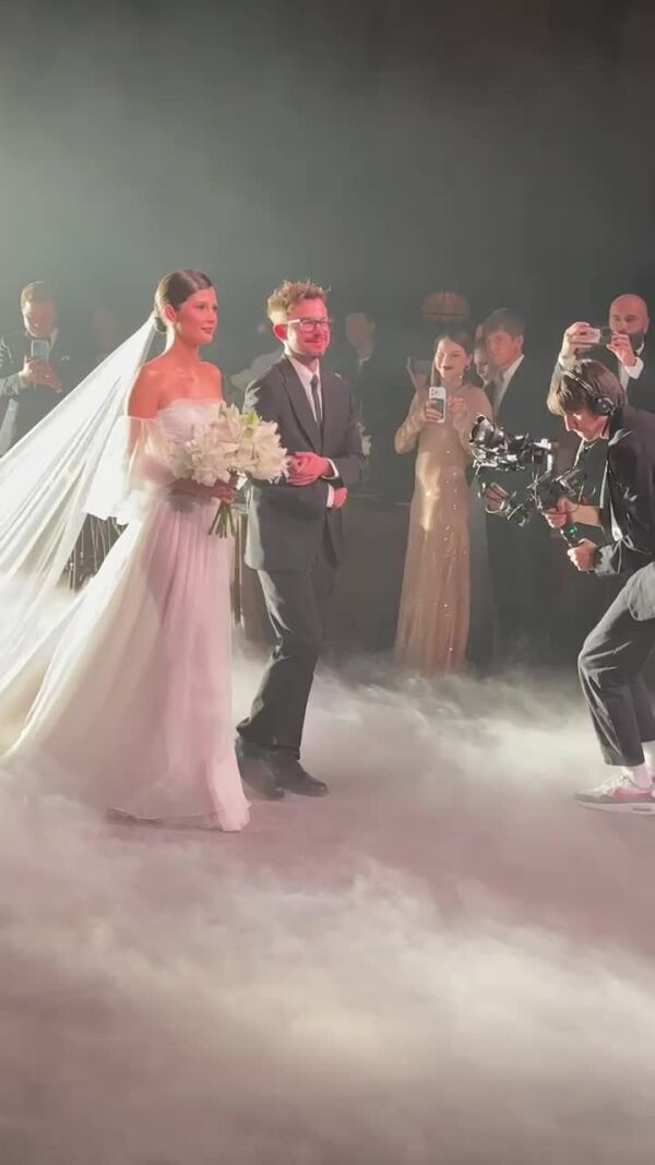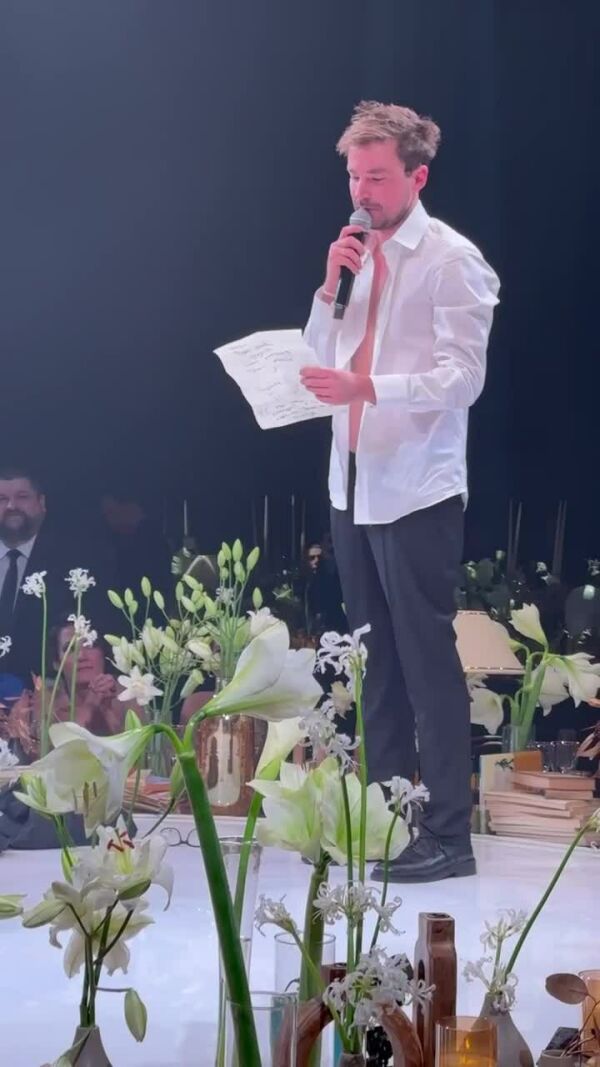 Несмотря на то, что торжество закрытое и актер признавался, что не хочет привлекать к нему много внимания, кадры с бракосочетания актера все же появляются в Сети. Так, Анна Титова в своем Телеграм-канале «Не последние люди в городе» опубликовала видео свадебной клятвы актера.