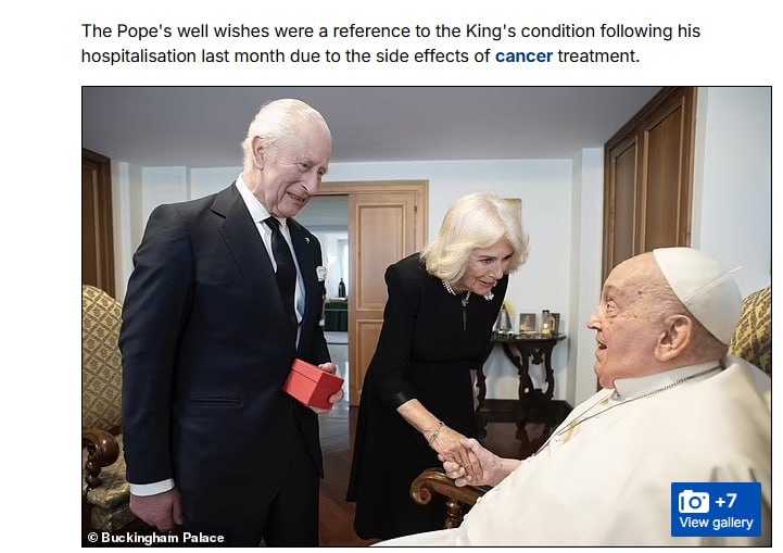 Daily Mail: Король Карл III и папа Римский Франциск обменялись трогательными словами на частной встрече после того, как публичная была отложена из-за проблем со здоровьем.