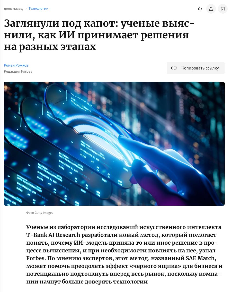 Российские ученые разработали метод, который позволяет понять, как и почему ИИ принимает решения, и при необходимости скорректировать их. Метод SAE Match анализирует, как меняются концепции внутри ИИ от слоя к слою, помогая выявить и исправить ошибки в реальном времени.