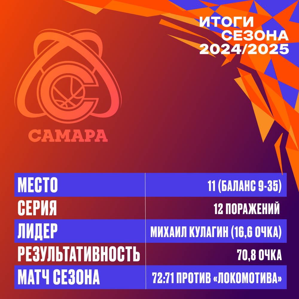 Буквально в прошлом году «Самара» справедливо считалась одной из тех команд, которые в сезоне-2024/2025 будут бороться за место в середине таблицы и последующее участие в плей-офф. В межсезонье в клубе существенно перестроили состав: его пополнили как российские, так и зарубежные игроки, которые в дальнейшем прошли проверку контрольными матчами и должны были показать себя во всей красе в новом сезоне Единой лиги. Оправдать высокие ожидания не получилось из-за череды травм на старте чемпионата. Тем не менее «Самара» уверенно продвигалась по турниру, сохраняя шансы по крайней мере на плей-ин.