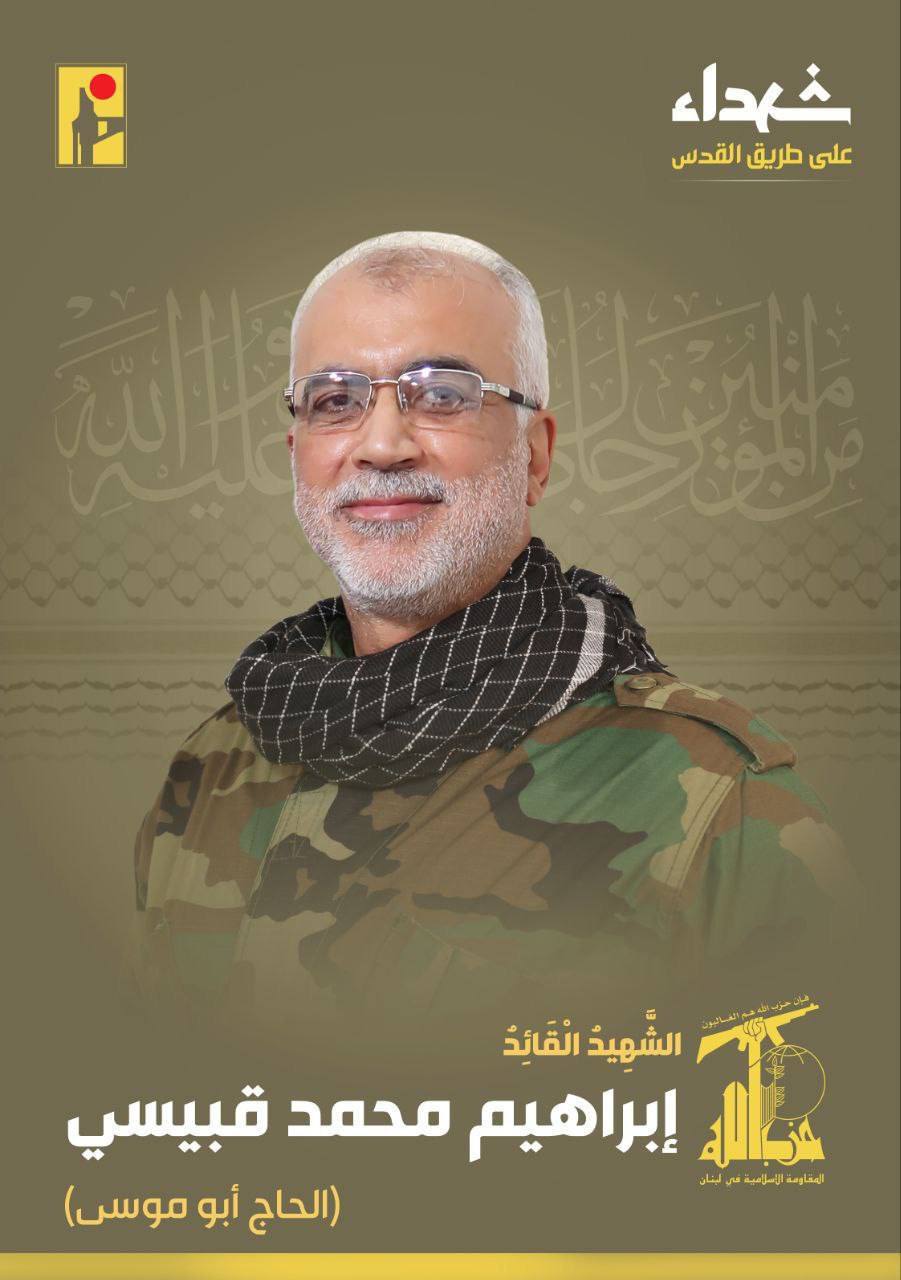 Хезболла заявила, что Ибрагим Мухаммад Кубаиси, известный как Хадж Абу Муса, командир ракетного подразделения группировки, погиб в результате авиаудара, совершенного израильскими военными самолетами в муниципалитете Гобейри, расположенном в южном регионе ливанской столицы Бейрута.