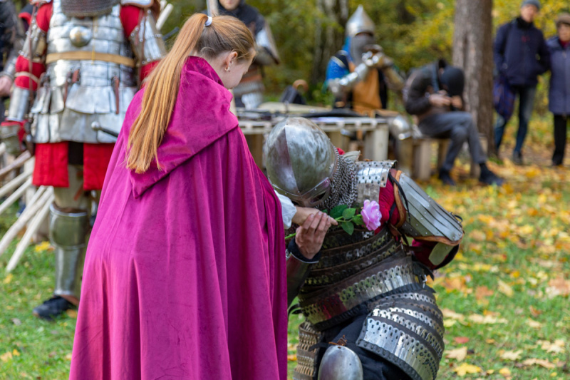 Центральным событием стал, естественно, рыцарский турнир на специально оборудованном ристалище. Зрители толпились вокруг, болели за своих и вдохновляли их на победы. Доспехи гремели, сковывали движения, в них было жарко, но парни старались быть достойными далёких предков и держаться с честью. Судьями турнира, как и положено, были прекрасные дамы: если бой заканчивался ничьей, оценивались куртуазность рыцаря и насколько достойно он проявил себя во время поединка.