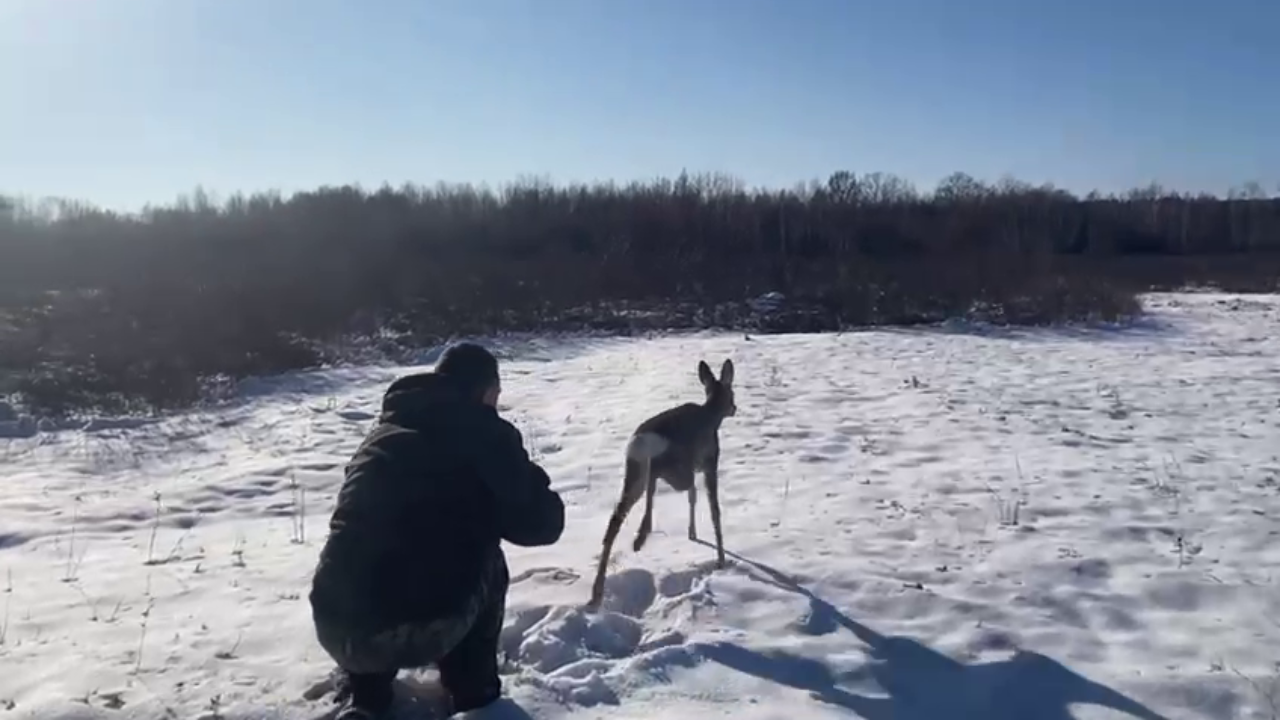 В Приамурье транспортные полицейские спасли дикую косулю, заблудившуюся на ЖД станции в Сковородино