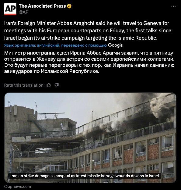 ❗️ Глава МИД Ирана Аббас Аракчи подтвердил, что завтра в Женеве проведет переговоры по ядерной программе с министрами Британии, Франции, Германии и других стран Евросоюза, пишет Associated Press.
