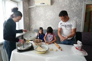 "У нас в семье кухня всегда была местом объединения народных традиций. Мои мама и папа — выходцы из Узбекистана и отсюда любовь к плову и другим узбекским блюдам. Рядом с нами жили татары — они знакомили нас с татарской кухней. Ну и конечно русская кухня. Например, все мои дети отлично жарят блины!", — говорит многодетный отец.