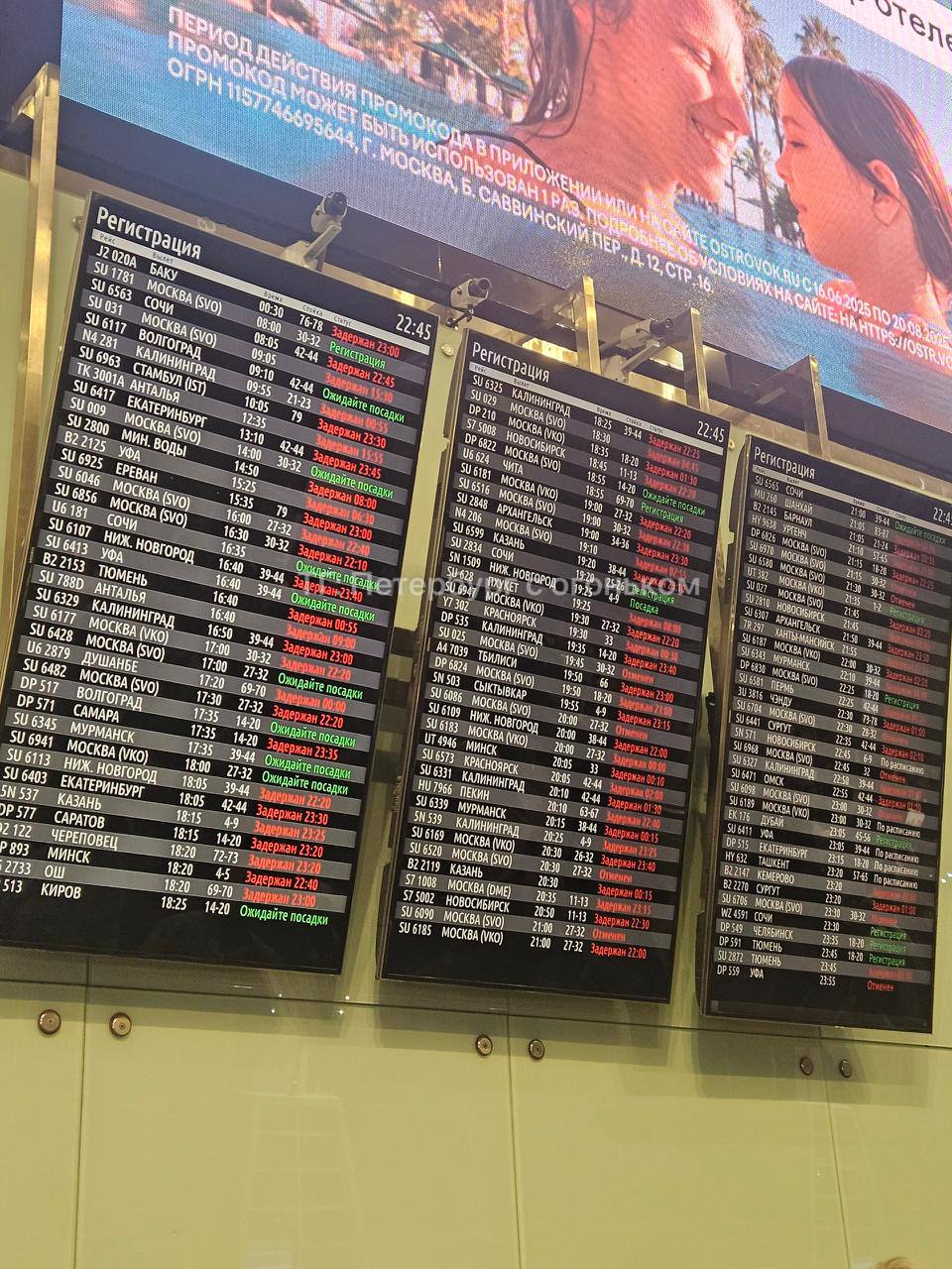 В Пулково «задержаны практически все рейсы» — данные паблика «Петербург с огоньком» на 22:45 по местному времени