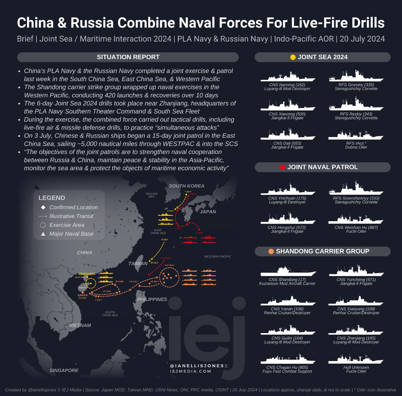 Инфографика по силам и средствам, задействованным в ходе недавнего учения ВМФ России и ВМС Китая "Морское взаимодействие 2024".