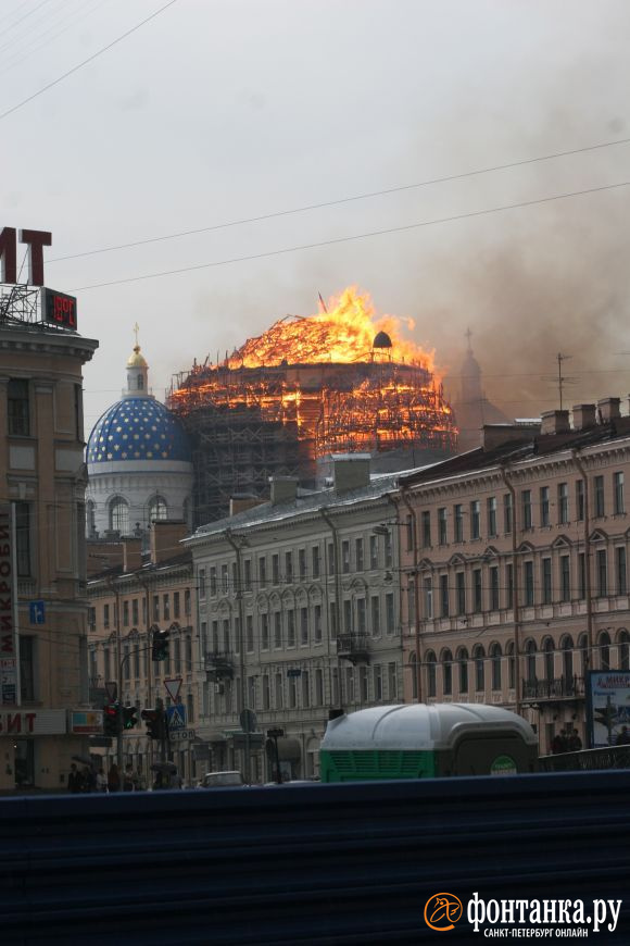 К вечеру пожару присвоили четвертый уровень сложности из пяти. С огнем боролись три десятка пожарных расчетов и вертолет. По словам Григория Горбунова, который тогда занимал должность главы пресс-службы ГУ МЧС по Петербургу, была угроза, что храм мог полностью выгореть.