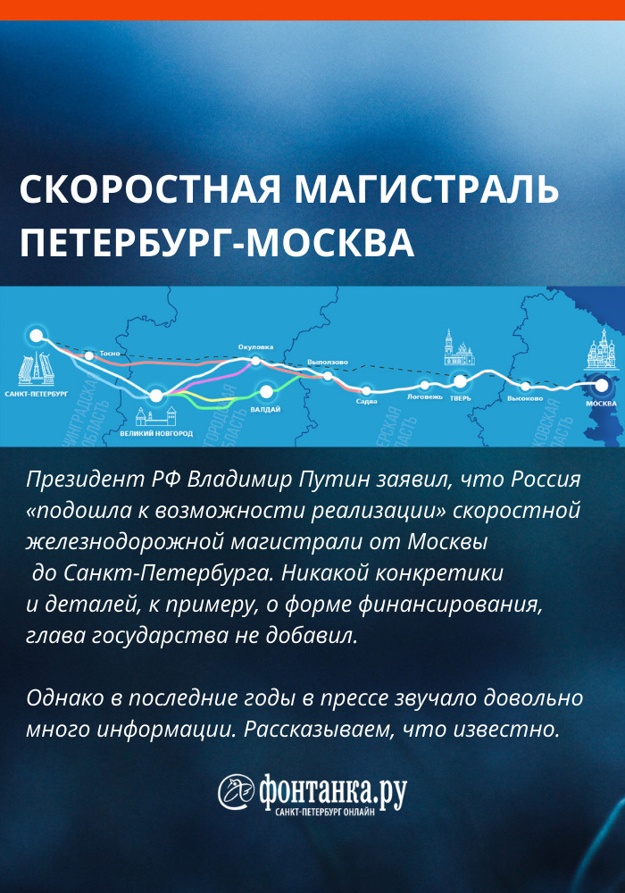 Публичное упоминание президентом высокоскоростной железнодорожной магистрали (ВСМ) между Петербургом и Москвой не принесло конкретики, но очевидно добавило аргументов в пользу того, что она, магистраль, будет построена. «Сейчас мы действительно подошли к возможности его реализации», — сказал Владимир Путин 17 августа на церемонии запуска третьей линии Московских центральных диаметров.