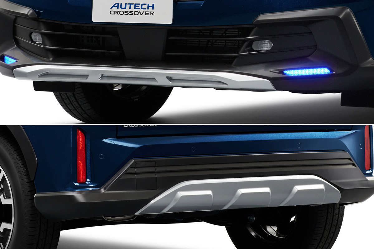 Следом за стандартным хэтчем кросс-версия получила другие бамперы. При этом у Nissan Note Autech Crossover оригинальный и более внушительный обвес – с новыми защитными накладками. Еще заменили дополнительные светодиодные полоски ходовых огней, плюс их перенесли ниже. Блестящие «штрихи» на радиаторной решетке оставили, но решетку теперь обрамляют не массивные «бумеранги», а узкие скошенные плашки. Как и прежде, на крыше есть подобие рейлингов, а на колесных арках – черные пластиковые накладки.
