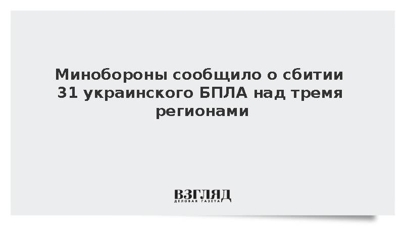 Силы противовоздушной обороны России за два часа уничтожили 31 украинский беспилотник самолетного типа в трех регионах страны, передает РИА «Новости». Как сообщили в Минобороны, атаки были отражены с 15.00 до 17.00 по московскому времени.