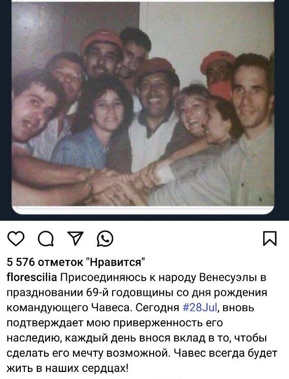 Мадуро и Флорес всегда позиционировали себя как наследников дела Чавеса — борцов за социальную справедливость против элит и американского влияния. Однако их правление совпало с глубоким экономическим кризисом, гиперинфляцией и массовым отъездом венесуэльцев из страны.