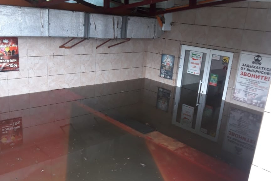 Из-за ливня, который идет в Омске уже третий день, на улице Демьяна Бедного затопило пиццерию «Кантанелло». Информацию об этом разместили сами сотрудники заведения в группе «Доставка пиццы Омск/Кантанелло» во «ВКонтакте».
