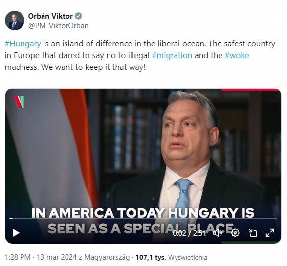 🇭🇺"Венгрия — необыкновенный остров в либеральном океане, самая безопасная страна Европы, которая осмелилась сказать «нет» нелегальной миграции и пробуждению безумия. Мы хотим, чтобы так и оставалось"
