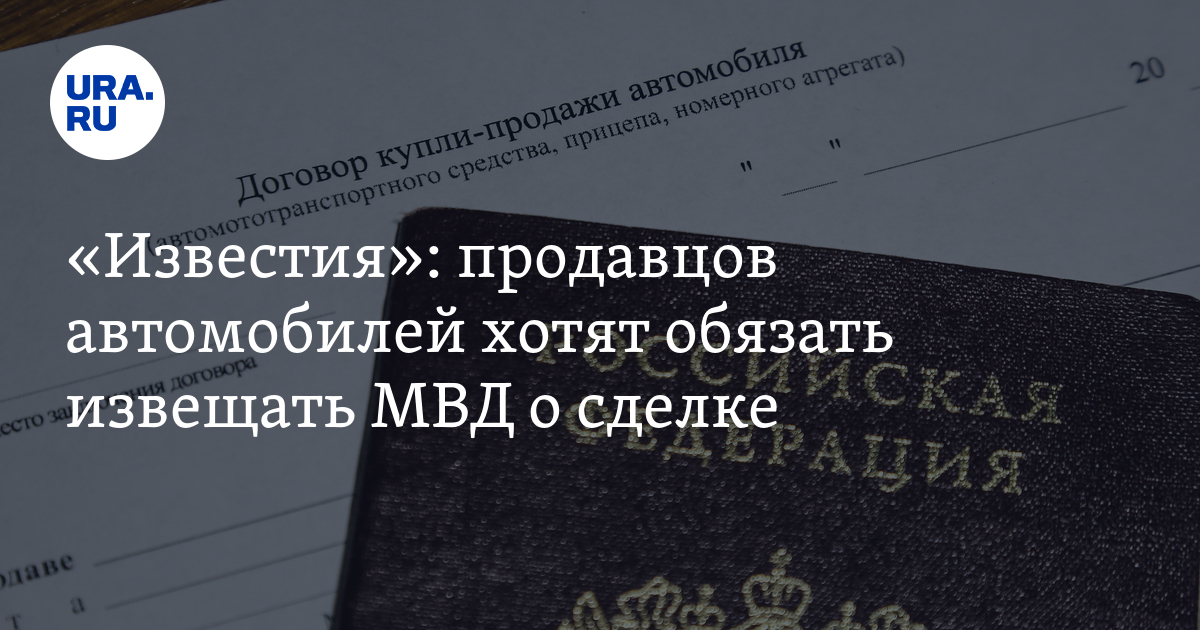 «Национальный автомобильный союз (НАС) просит МВД РФ изменить правила регистрации транспортных средств, обязав продавцов автомобилей информировать о сделке сотрудников Госавтоинспекции. В нынешних нормах есть лазейки, которыми пользуются недобросовестные автомобилисты, чтобы не платить транспортный налог, не получать штрафы с камер и не покупать полисы ОСАГО», — передают содержание инициативы «Известия».