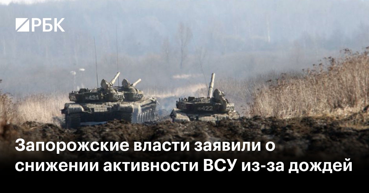 Проливные дожди начались на нескольких участках фронта в Запорожской области, из-за чего Вооруженные силы Украины (ВСУ) были вынуждены снизить наступательную активность, сообщил в своем телеграм-канале член главного совета региональной администрации Владимир Рогов.