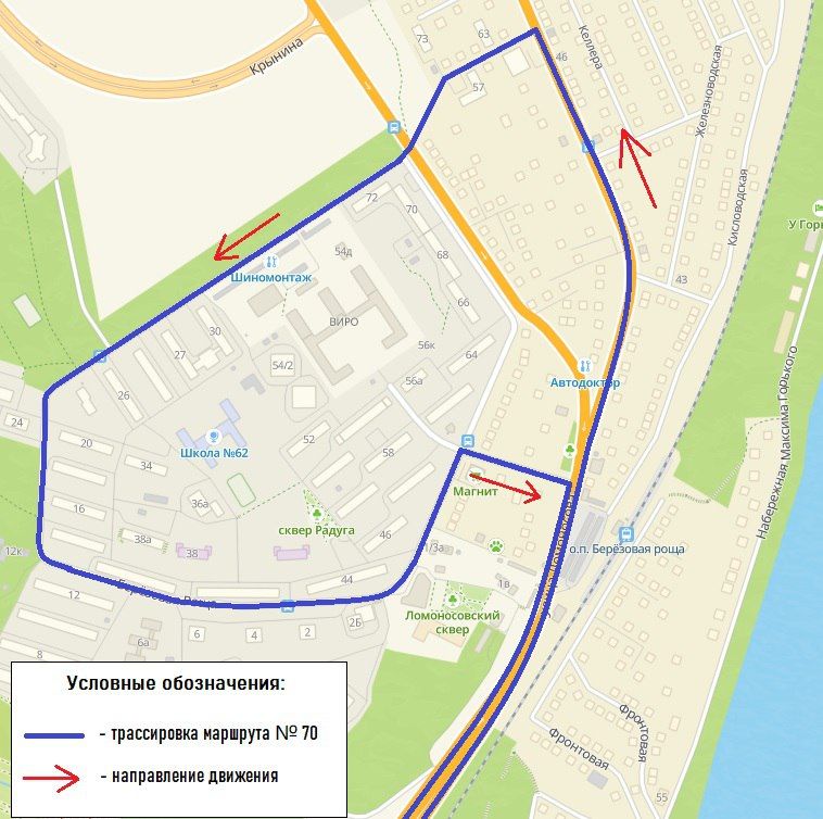 Автобус будет осуществлять заезд в микрорайон через проезд вдоль домов № 53 и № 57 по Ломоносова, а выезд — по привычному маршруту.