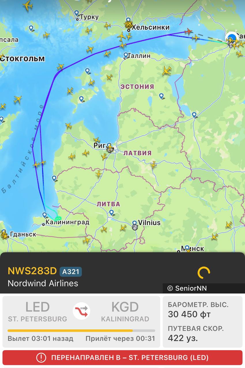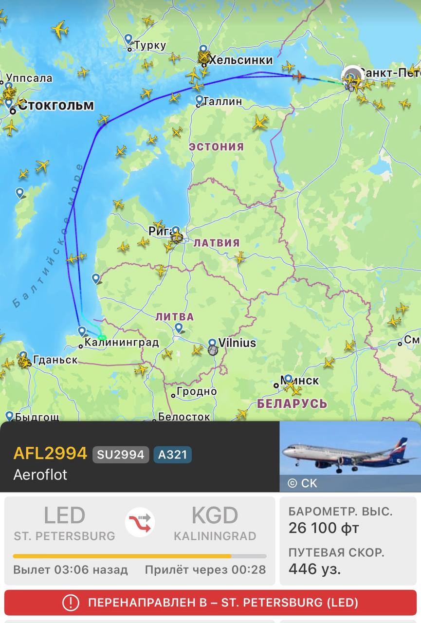 В Калининграде тем временем продолжаются трудности с приёмом воздушных судов из-за погоды. Два самолёта из Петербурга сейчас возвращаются в Пулково.