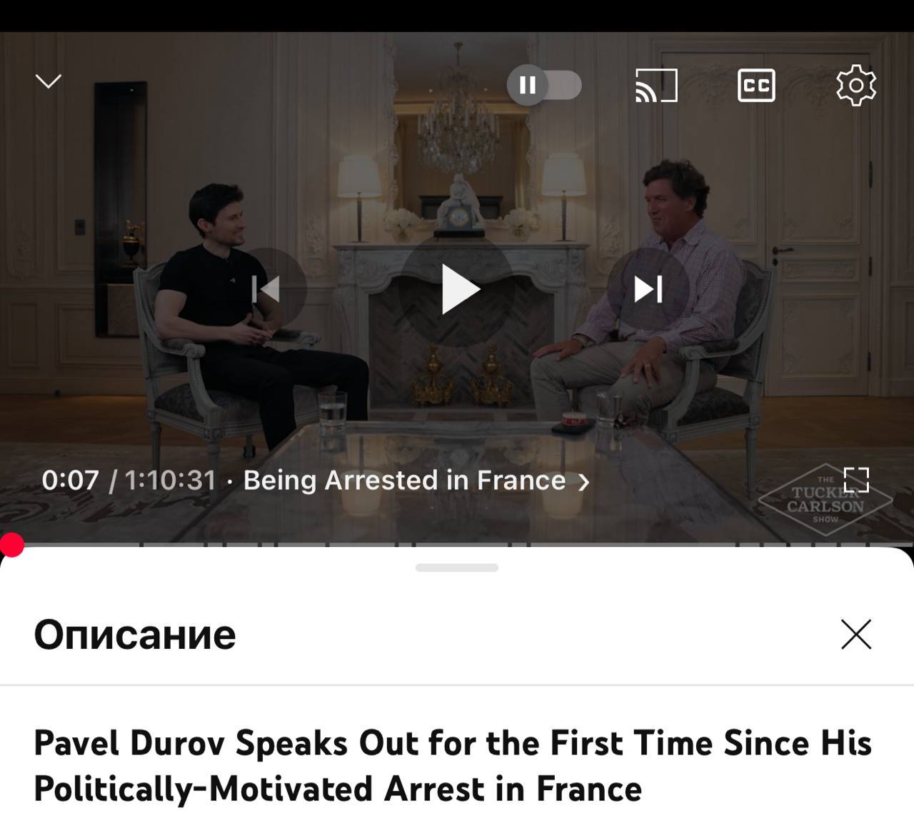 Под шумок Павел Дуров дал новое часовое интервью Такеру Карлсону.