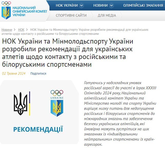 Украинские атлеты будут докладывать о нарушениях россиянами нейтрального статуса на Олимпийских играх