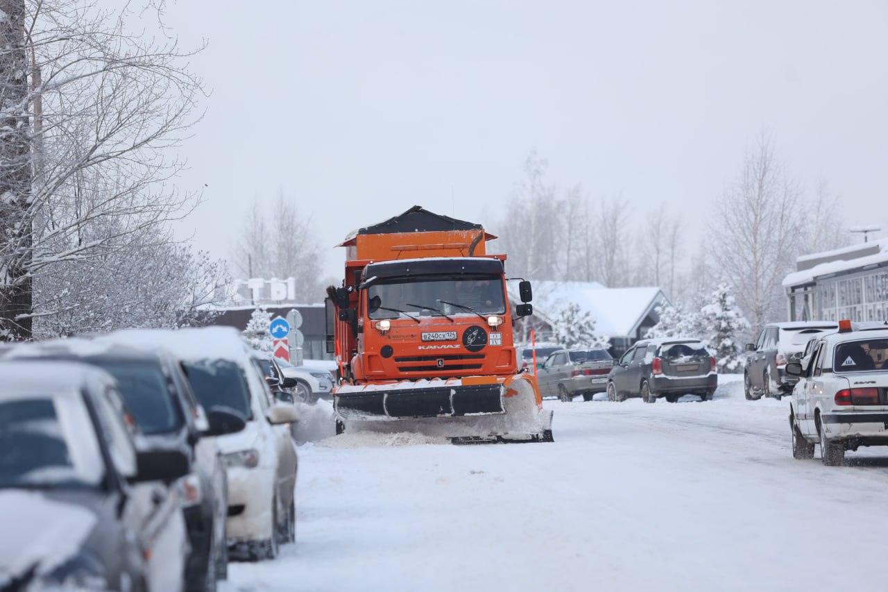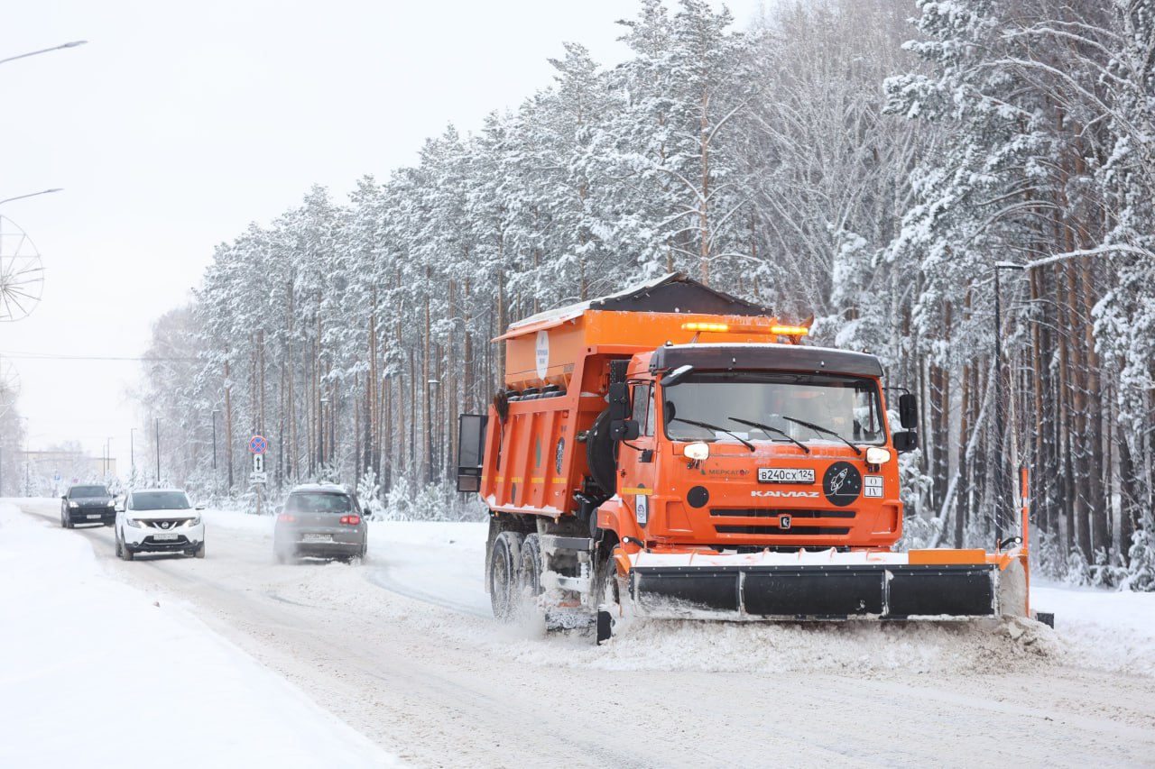 Дорожная техника с самого утра работает по всему Красноярску